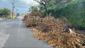 Condomínio faz poda em árvores, mas galhos estão há vários dias espalhados na General Câmara