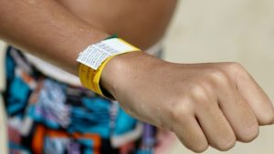 Pulseiras com identificação e contato dos responsáveis são entregues na sede da Guarda Costeira e...