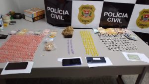 Agentes apreenderam porções de maconha ou cocaína que já estavam embaladas e prontas para venda...