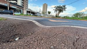 Entrada da Braz Olaia Acosta pelo Anel Viário Sul é interditada após afundamento no asfalto