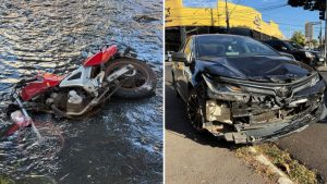 Moto cai em córrego da avenida Francisco Junqueira após carro avançar o sinal vermelho