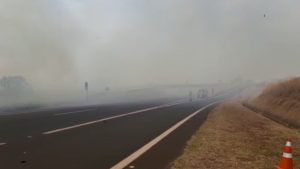 Rodovia Cândido Portinari é interditada no km 354 por conta da falta de visibilidade provocada pela fumaça