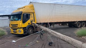 Caminhão atinge fios e derruba poste de energia, na Zona Norte de Ribeirão