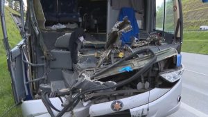 Colisão traseira entre o coletivo e um caminhão foi na madrugada desta terça (3); vítimas...