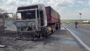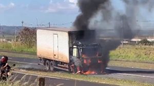 Caminhão pega fogo e causa interdição parcial na Rodovia Anhanguera