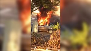 Em Franca, um carro pegou fogo na manhã deste domingo (15), após atingir uma árvore no bairro Estação