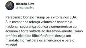 Ricardo Silva parabeniza Donald Trump pela vitória nas eleições americanas