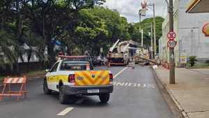 Avenida Francisco Junqueira tem interdição parcial após ônibus atingir poste de energia