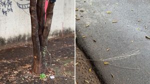 Moradores reclamam dos perigos de fios soltos ao lado de escola no bairro Ipiranga