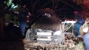 Motorista do carro teria perdido o controle da direção, saiu da pista e bateu em...