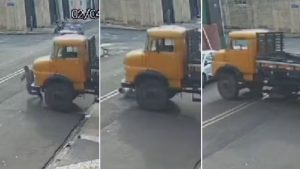 Borracheiro salva idoso de um segundo atropelamento por caminhão desgovernado, em Monte Alto