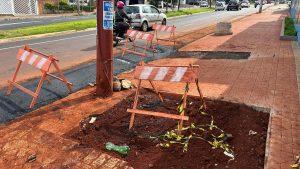 Cavaletes foram colocados na faixa da direita após um serviço da Saerp no quarteirão entre...