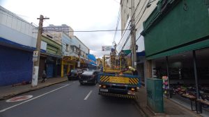 Veículo teria passado pelo local e danificado a fiação; agentes da empresa realizam reparos e...
