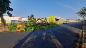 Queda de galho de árvore bloqueia, parcialmente, trânsito na rua Paranapanema, no Sumarezinho
