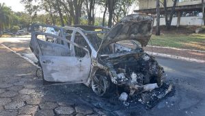 Carro sofre pane e pega fogo em frente ao Teatro Municipal, no Morro do São Bento
