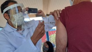 Município recebeu cinco mil doses, mas ainda restam 12 mil trabalhadores para serem imunizados; Sandro...