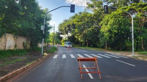 Bloqueio é do lado esquerdo da via, após a rua Aliados, no sentido bairro/ Centro...