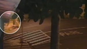 Câmera de segurança flagrou as agressões por volta da meia-noite de segunda (22), na rua...