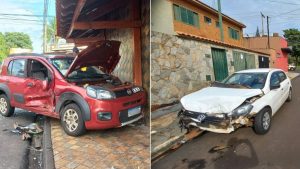 Batida foi na esquina com a rua Rio Verde; com o impacto, um dos veículos...
